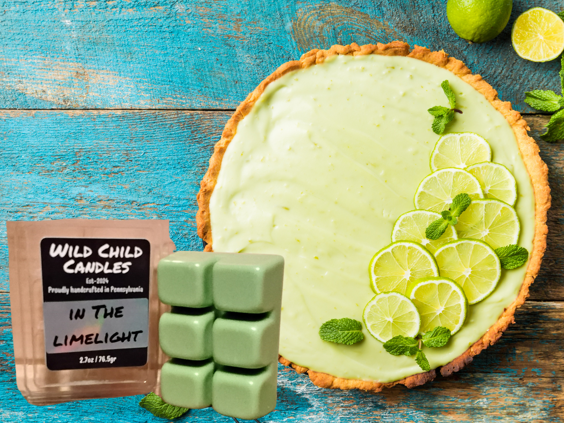 Illuminate your space with the In The Limelight Wax melt from Wild Child Candles. This unique scent captures the essence of a delicious key lime pie, creating a warm and inviting atmosphere in your home.