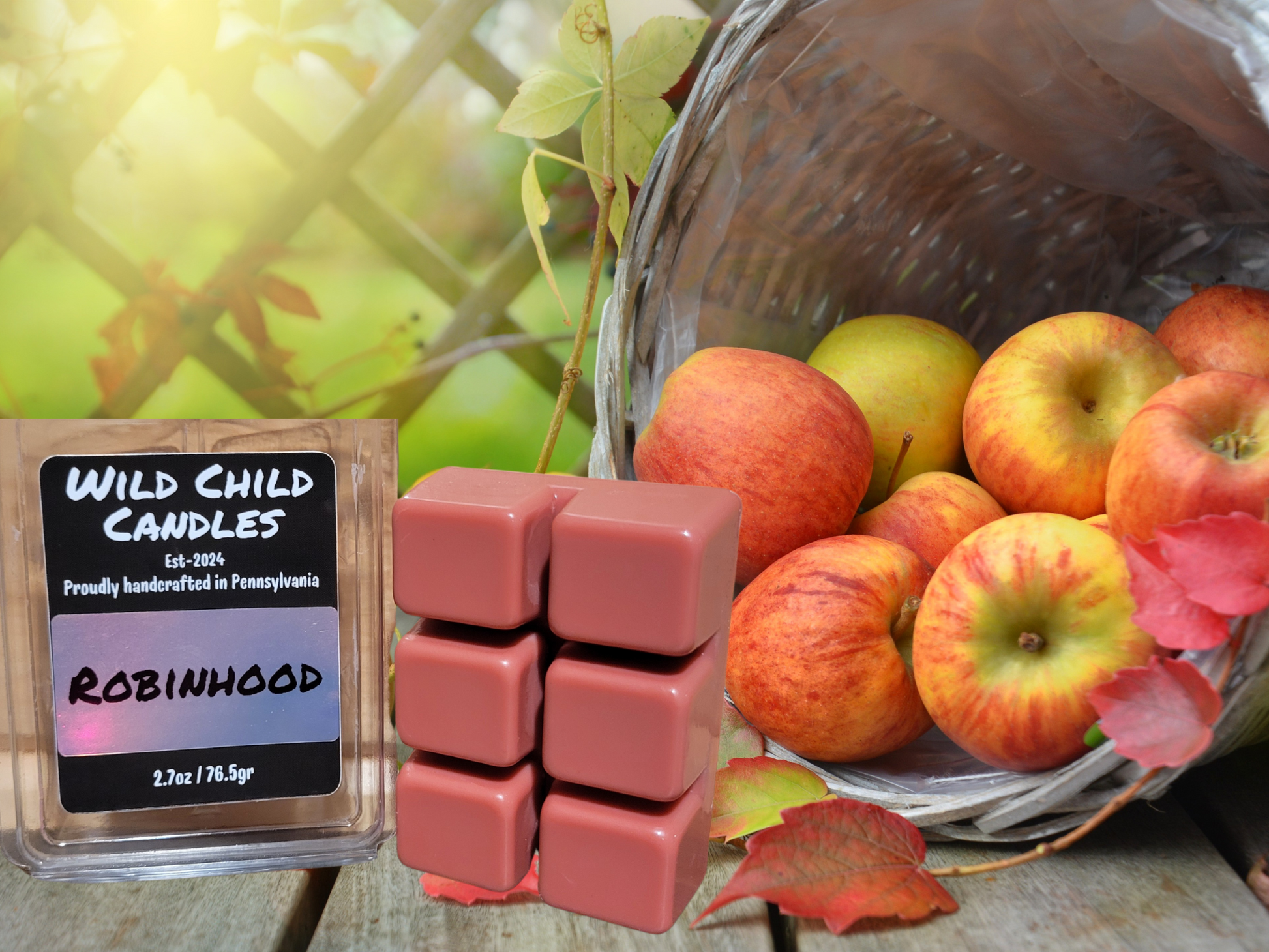 Indulge in the refreshing scent of juicy Macintosh apples with Robinhood 2.7oz wax melts from Wild Child Candles. Bring the essence of crisp apples into your home with this delightful wax melt. With notes of green leaves, pear, and apple, follwed bya base of vanilla and cedar, this mesmorizing aroma will make you feel like you are hunting in the midst of an apple orchard.