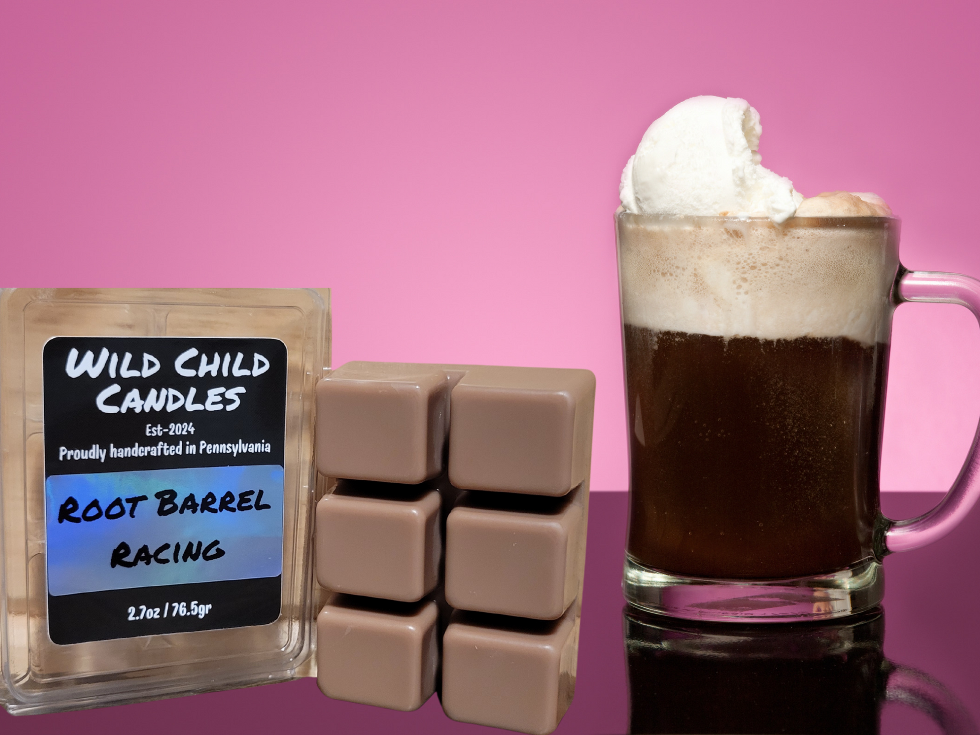 Indulge in the delicious scent of a root beer float with the 2.7oz Root Barrel Racing wax melts from Wild Child Candles. This wax melt will take you back in time to those warm summer days with a drink in your hand! With notes of cream, caramel, and cinnamon, followed by mint, anise, and spices, and a hint of sarsaparilla, vanilla, and licorice, this wax melt will transform your space into one sweet treat.